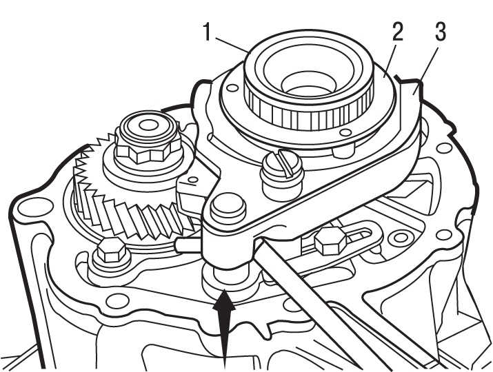 ) фиксации подшипника. Для облегчения снятия кольца приподнимите вал коробки передач;