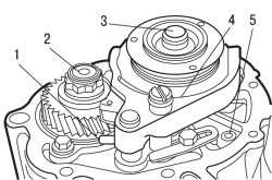 - снимите ведущую шестерню 5-й передачи вместе с синхронизатором;