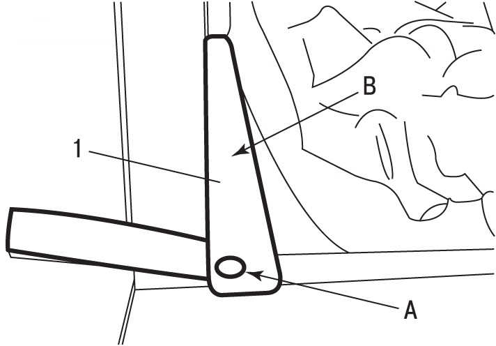 Рис. 9.51. Расположение болтов (1) крепления стекла, видимых через отверстия (А)