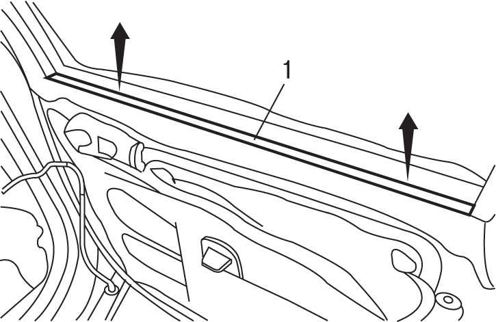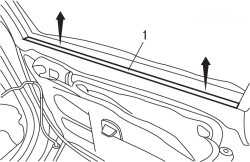 Рис. 9.48. Снятие внутреннего нижнего уплотнителя (1) оконного проема двери