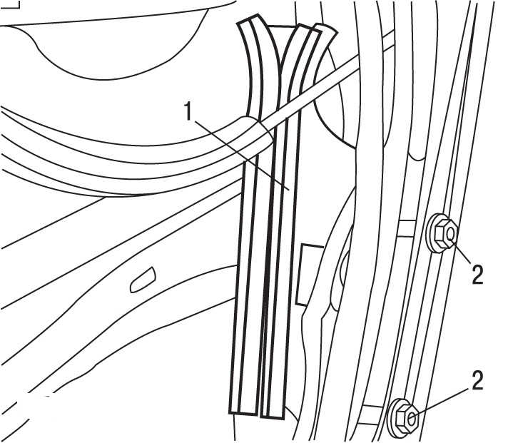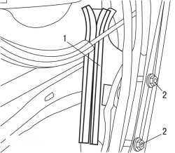 Рис. 9.50. Расположение гаек (2) крепления кулисы (1) стекла