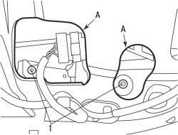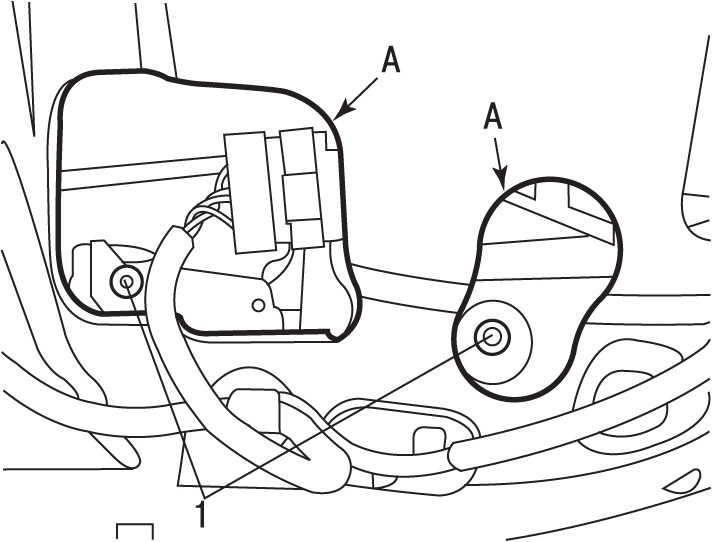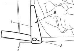 - опустите стекло до появления болтов 1 крепления стекла в отверстиях A (