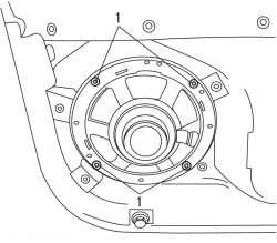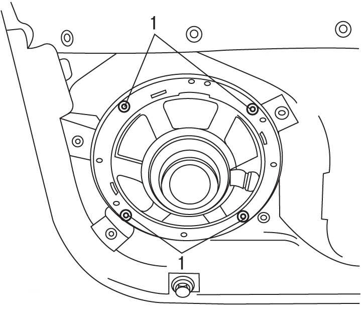 Рис. 9.57. Расположение винтов (1) крепления динамика передней двери